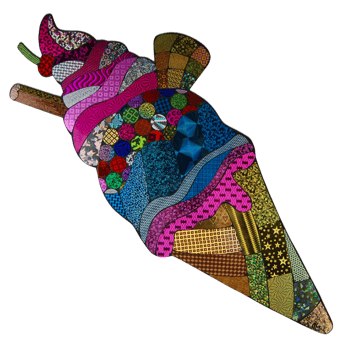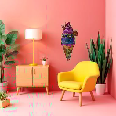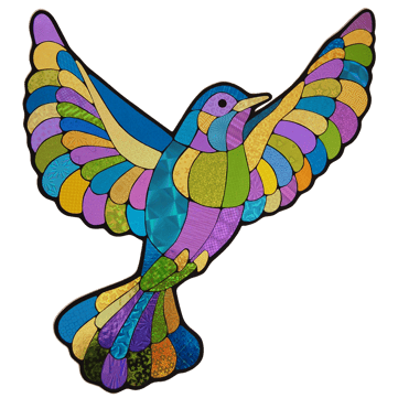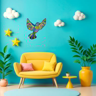 Losse muur objecten van holografisch papier op passe-partout karton.